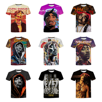 เสื้อยืดคอกลมพิมพ์ลายสำหรับผู้ชายผู้หญิง,เสื้อยืดฮิปฮอปเสื้อยืดลำลอง2PAC 3D